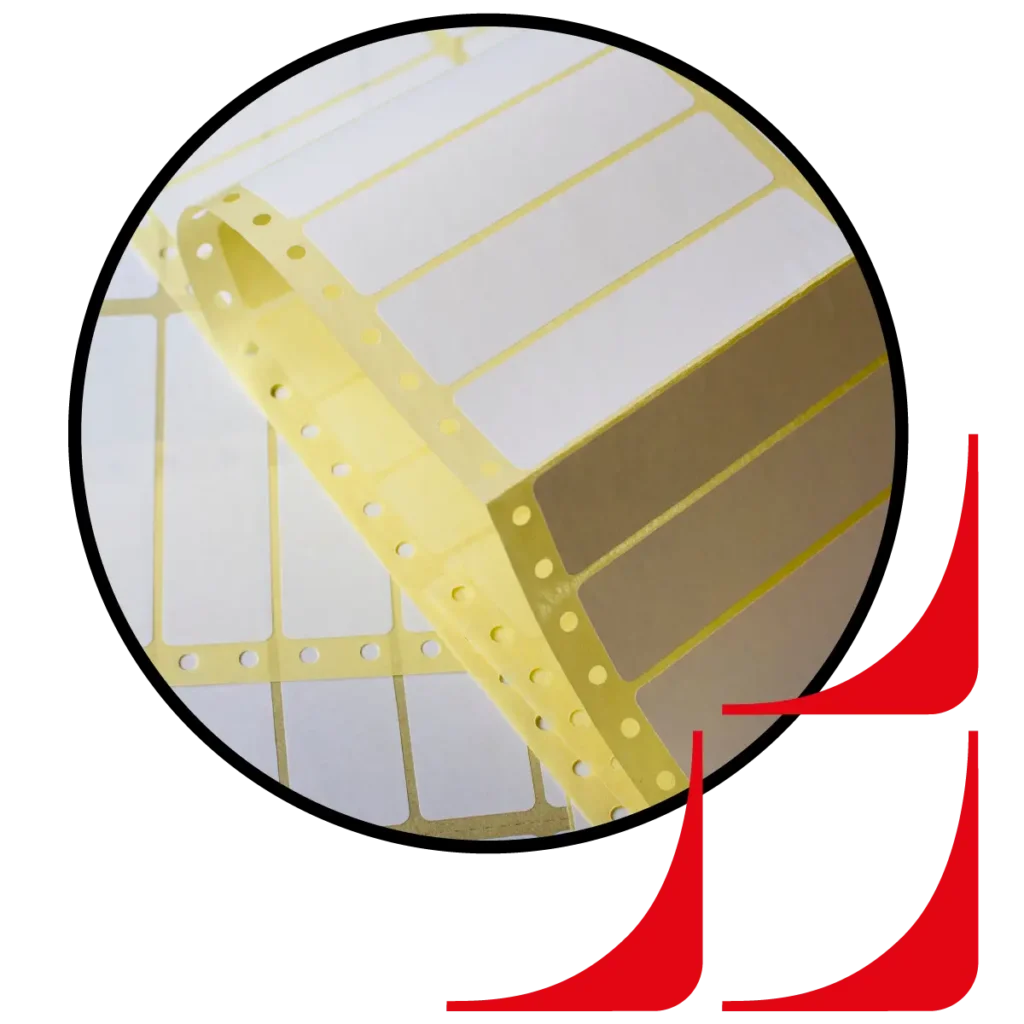 Papier couché blanc ou Polypropylène blanc brillant pour environnements exigeants tels que l’agroalimentaire et l’industrie. Formes rectangulaire, carré, ronde, ronde intégrée dans un carré, bande étiquette sans découpe.